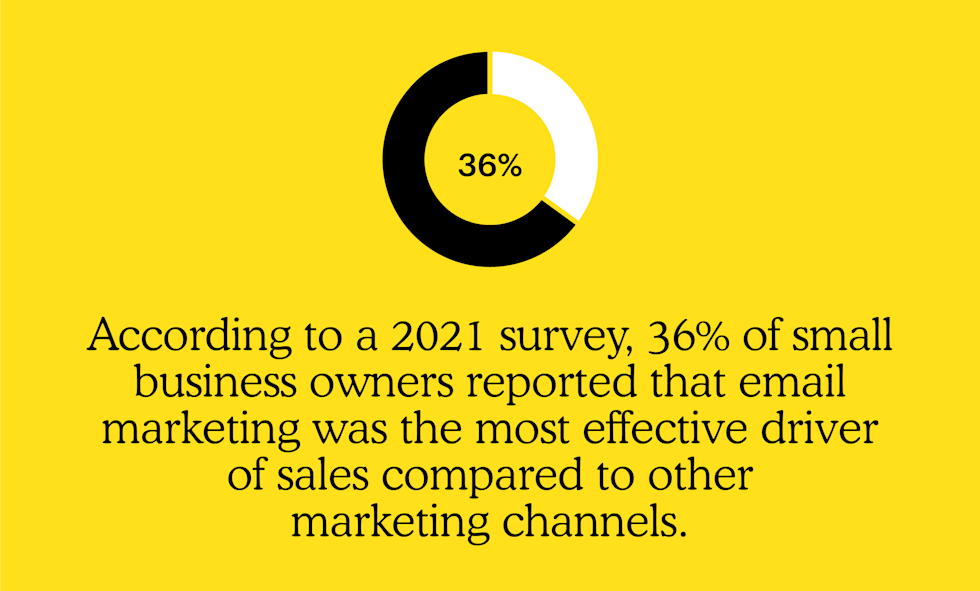 Digital marketing helps connect businesses with their target audience to find more customers online. However, it also offers the ability to continuously find new ways to bring marketing and advertising costs down by using data collected from each marketing campaign to make better decisions while enabling you to understand your website performance. There are many different types of digital marketing, including social media marketing, search engine optimization (SEO), search and display advertising, and email marketing. According to a 2021 survey, 36% of small business owners reported that email marketing was the most effective driver of sales compared to other marketing channels.